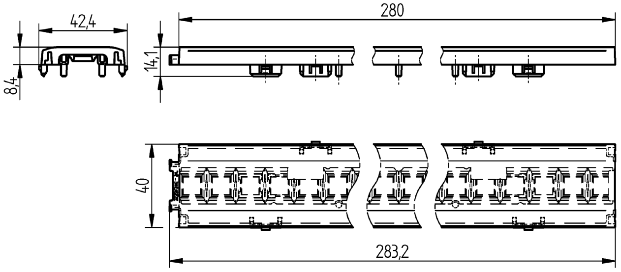 • Flexibility due to clip fastening suitable for luminaire sheets (0.5 - 1.0 mm) and aluminium profiles