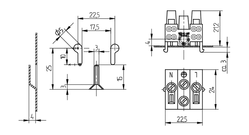| Screw terminals: | ø 3.4 |